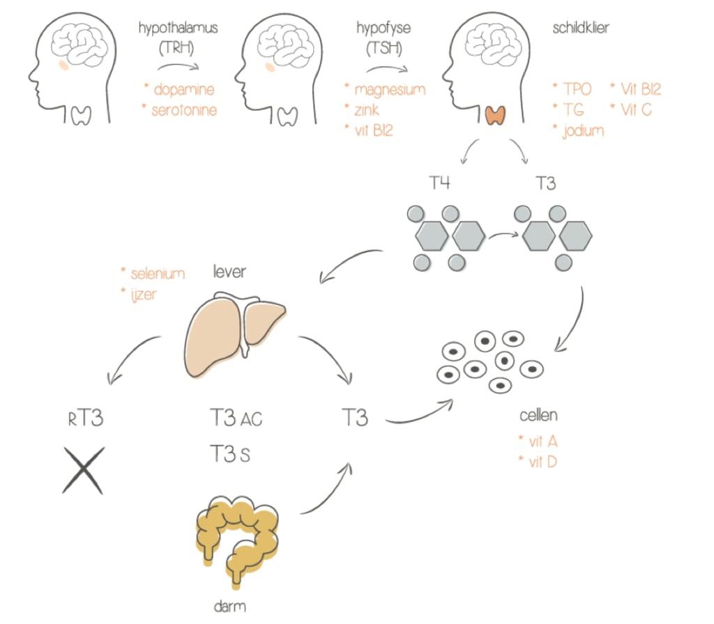 Een goede schildklierwerking draait niet alleen om de schildklier zelf, maar om het samenspel tussen hersenen, darmen, lever, voeding en stress.