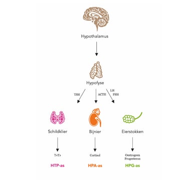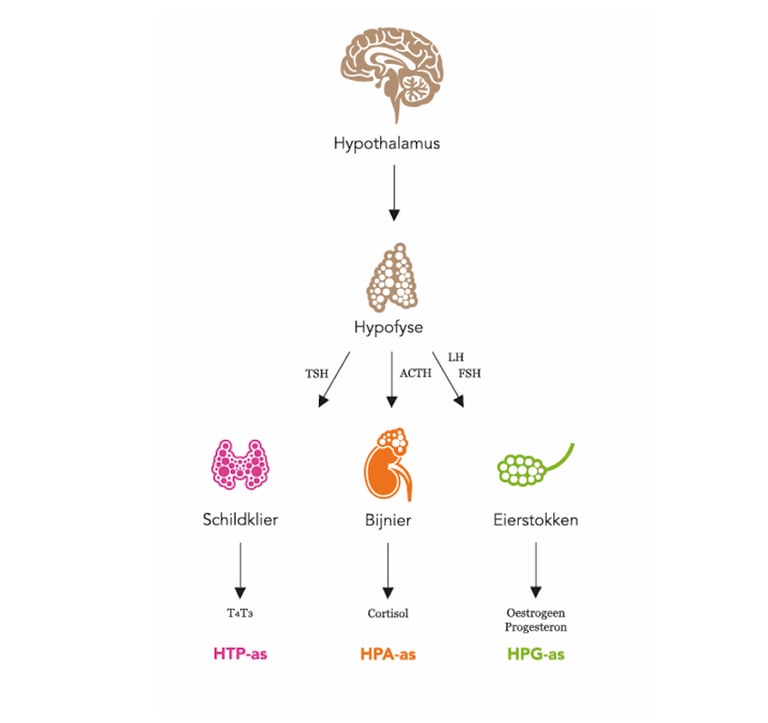 Ze communiceren via zogenaamde hormonale assen: samenwerkingen tussen je hersenen en verschillende klieren in je lichaam.